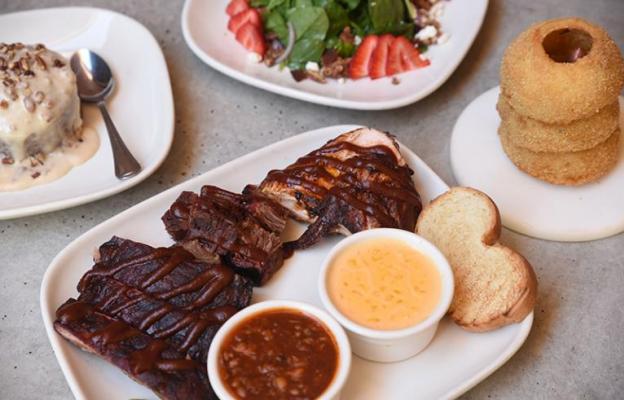 KC's Premier Gourmet Wood Cookery. Rated #1 barbecue by Zagat. Full bar.